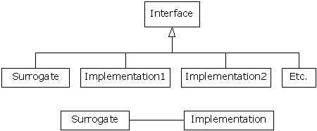 surrogate, it simply turns around and calls the method in the implementing
