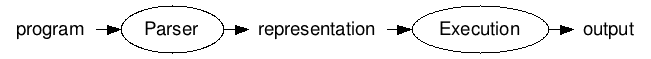 >> program = "(begin (define r 3) (* 3.141592653 (* r r)))"We're using here the simplest possible internal representation, one where Scheme lists, numbers, and symbols are represented as Python lists, numbers, and strings, respectively.